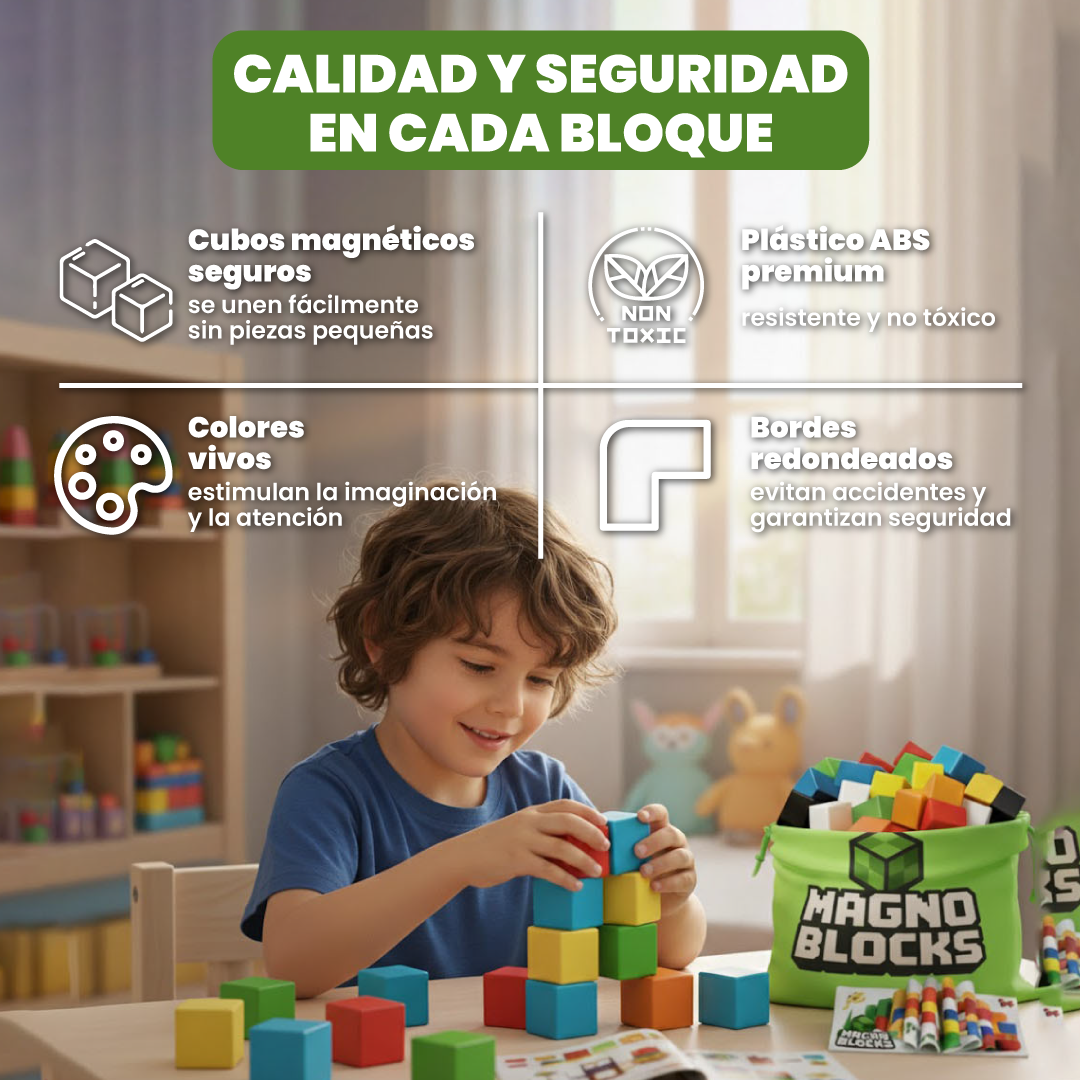 Olvida los celulares y las horas en el computador. Con Magnoblocks™, los pequeños se entretienen creando, riendo y jugando juntos, disfrutando la magia del juego libre sin distracciones digitales.