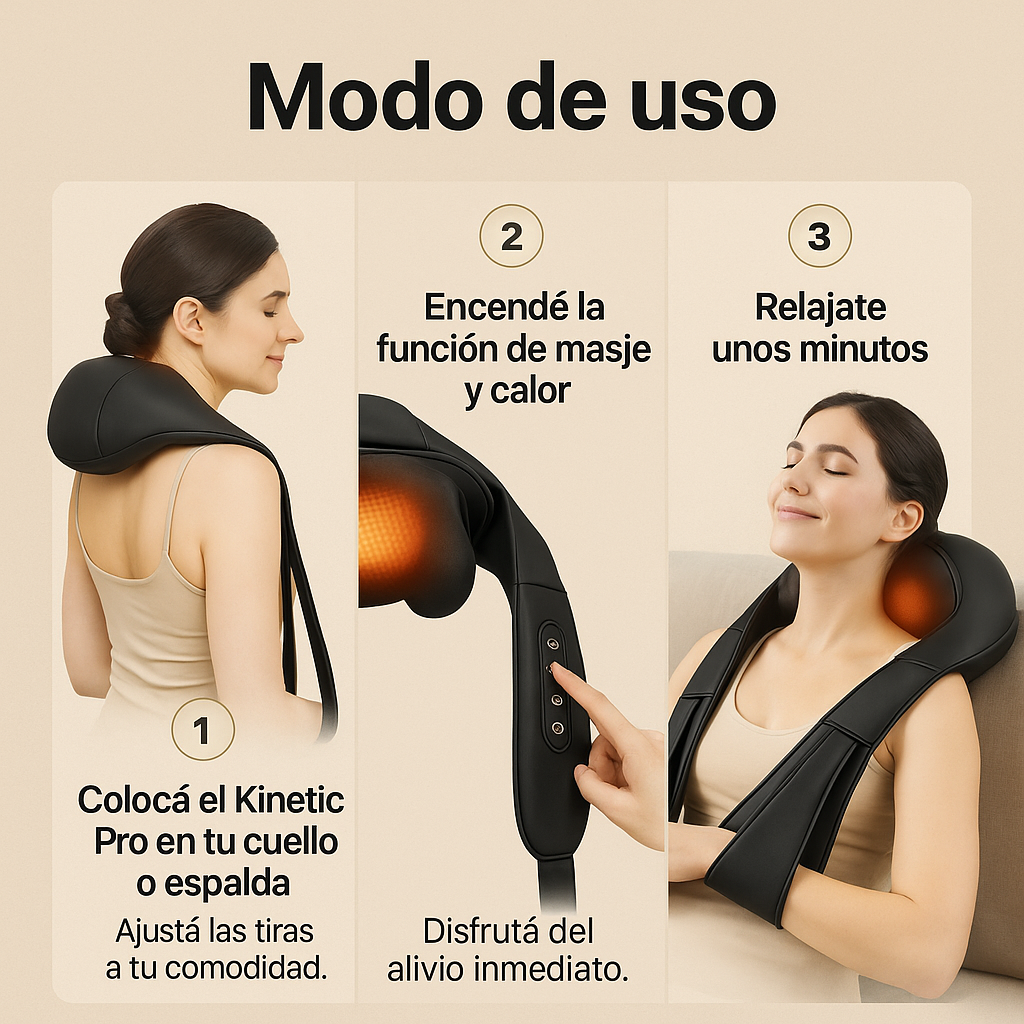 Despídete de las molestias y el estrés que te acompañan a diario para disfrutar de un suave masaje térmico y aliviador. Las pistolas musculares u otros masajeadores jamás lo pueden igualar. Transforma tu hogar en un espacio de bienestar y relajo.