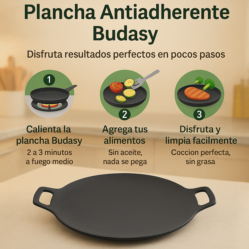No sigas luchando con ollas y sartenes que enfrían tu comida. Esta plancha retiene el calor por más tiempo, es libre de tóxicos y segura para tu familia. Ideal para servir directo en la mesa y disfrutar sin preocupaciones.